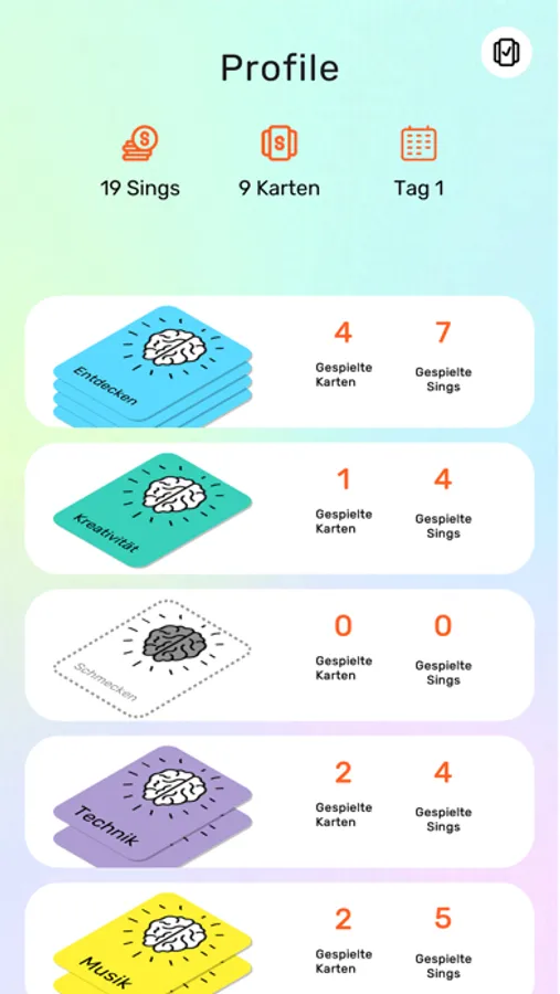 Für jede gespielte Karte erhältst du Punkte, in der App “Sings“ genannt. Wenn du genügend Sings gesammelt hast, kannst du das nächste Level erreichen und neue Spielkarten freischalten. Die Aufgaben, die du auf den Karten findest kannst, können ganz unterschiedlich sein – von kleinen Erkundungstouren in deiner eigenen Stadt über spannende Fakten zu Deutschland bis hin zu Quizfragen ist alles dabei. Starte jetzt deinen Weg zur Superkraft Deutsch!