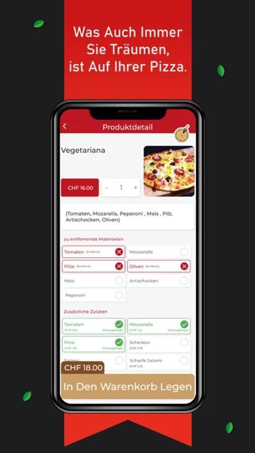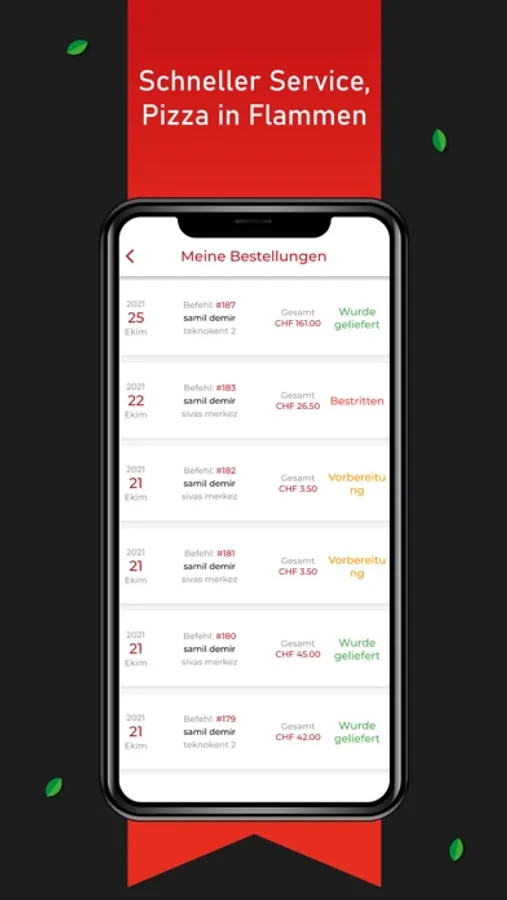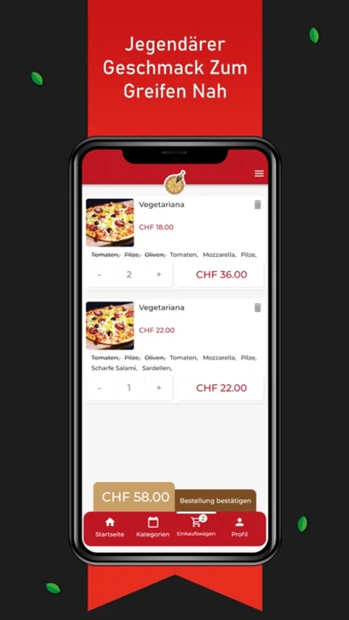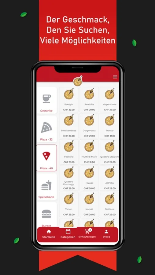 Wählen Sie aus Pizza-, Pita- und Dönersorten und geben Sie Ihre Bestellung auf.