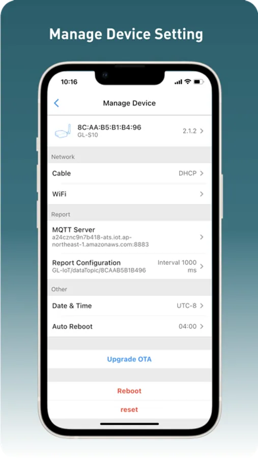 • Device Configuring: Configure devices' reporting interval, MQTT, DHCP/Static IP, Setting up MQTT servers, OTA firmware upgrades and more.