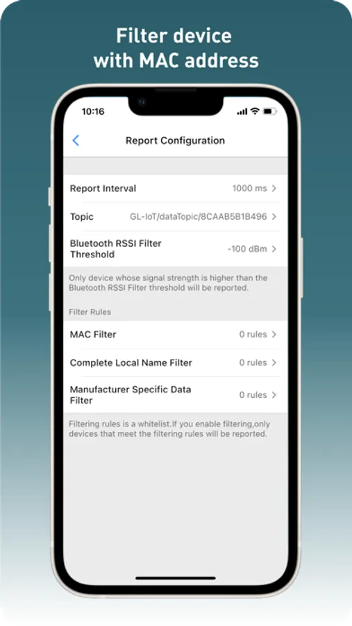 • Device Filtering: Filters GL-S10 devices by MAC addresses printed on the bottom label of your device shell.