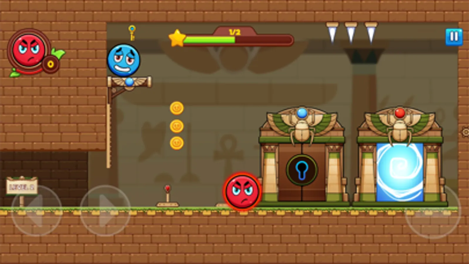 Red and Blue Puzzle: Twin Color Ball is an addictive puzzle game where you have to synchronize two characters. Control both ball at the same time and use the buttons to move, push boxes and collect coins to reach the exit in the pyramid.