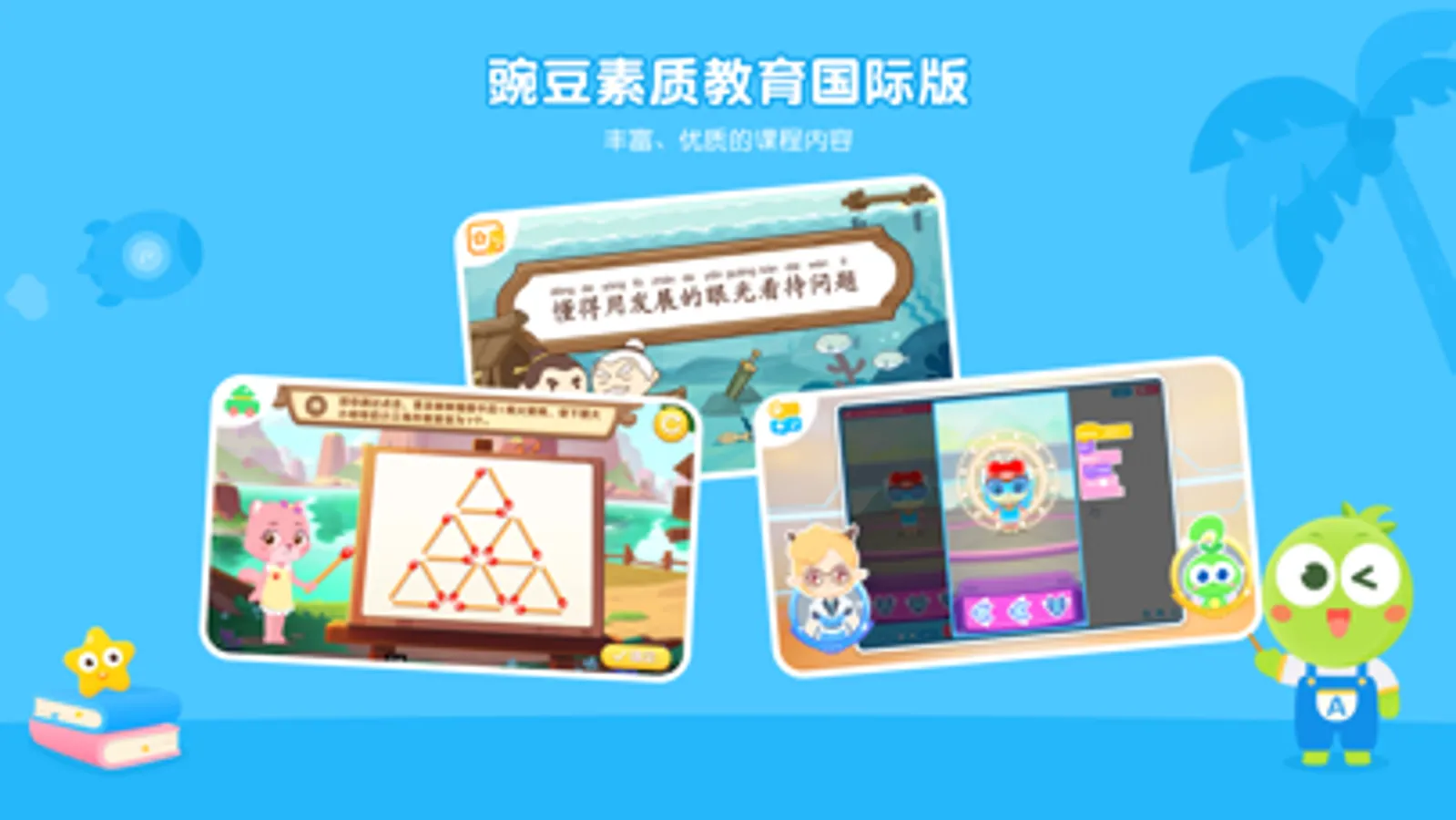 豌豆素质秉承科技赋能教育、专业引领未来的理念,基于认知心理学、脑科学及核心素养等研究,采用美国 NCTM 评价标准,研发符合学生年龄特点及发展需求的专业内容,推出益智探索,口才表达,美术素养、科学编程、音乐审美五大领域课程,提供高品质的素质教育平台,满足家长多样化教育需求。