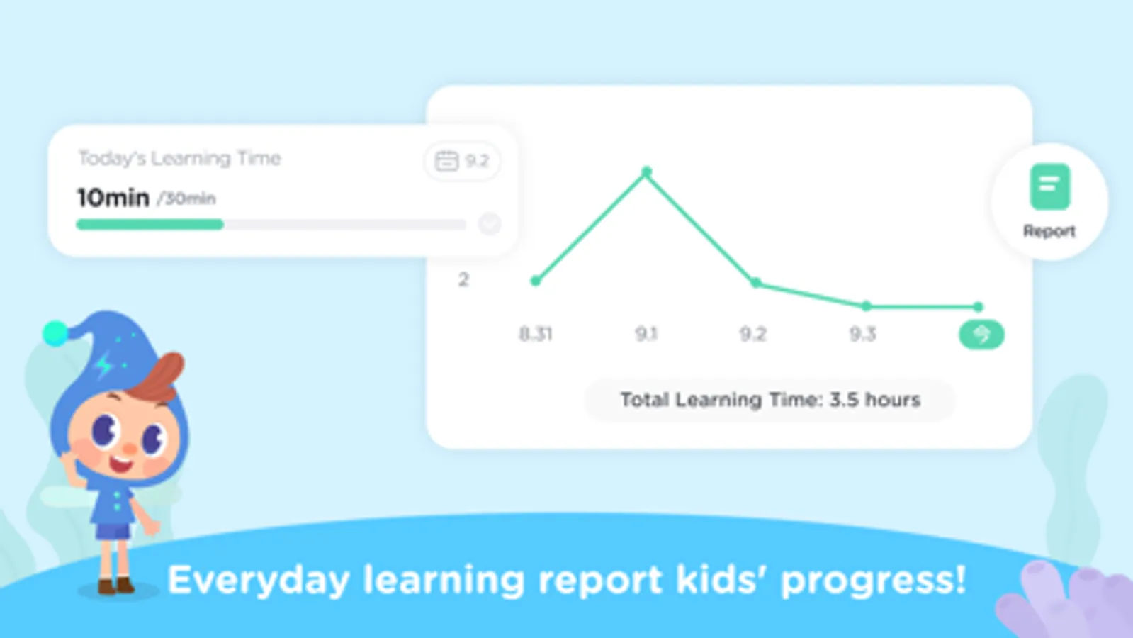 4.Everyday learning report allows parents to track how much time their children spent on the app and what they learned.