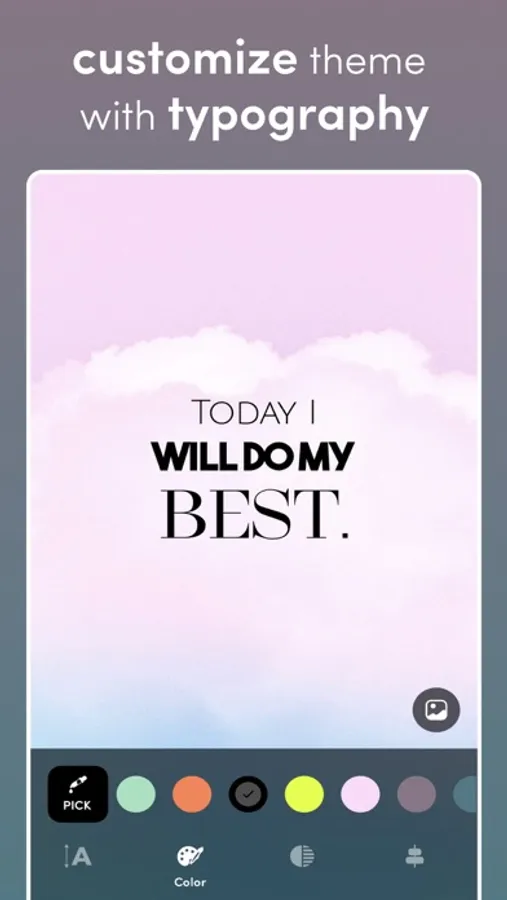 See your 'I am' quotes in customised themes and typography of your choice. Customise your affirmation quotes the way you desire and acquire positive thinking.