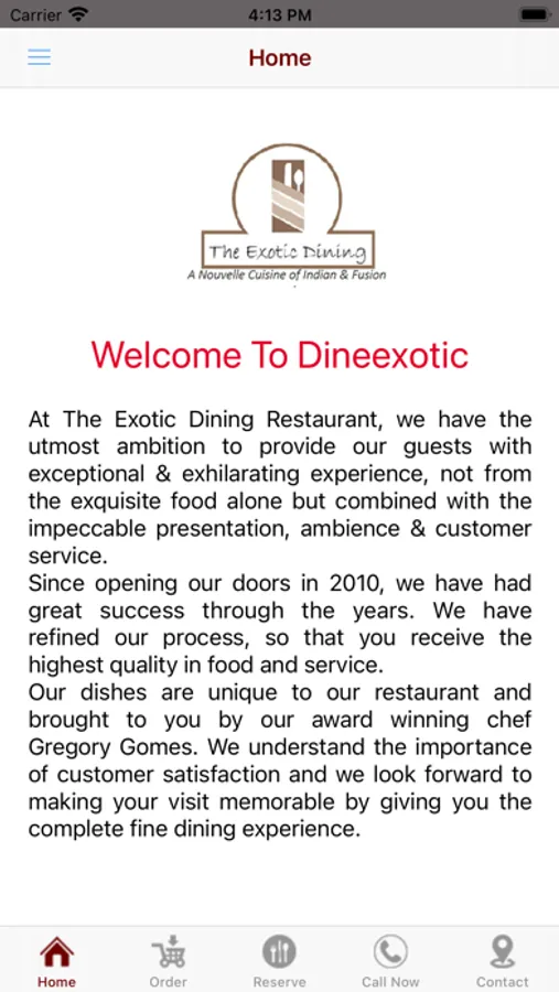 Our dishes are unique to our restaurant and brought to you by our award winning chef Gregory Gomes. We understand the importance of customer satisfaction and we look forward to making your visit memorable by giving you the complete fine dining experience.