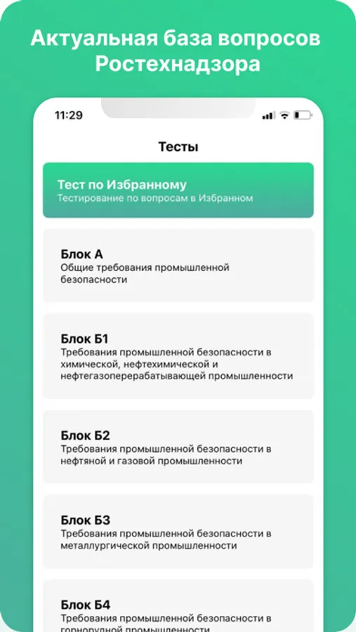Приложение поможет быстро подготовиться к экзамену по Промышленной безопасности.