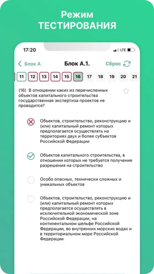 - Избранное и тестирование по нему - добавляйте любые вопросы из обоих режимов и проходите отдельный тест по нему