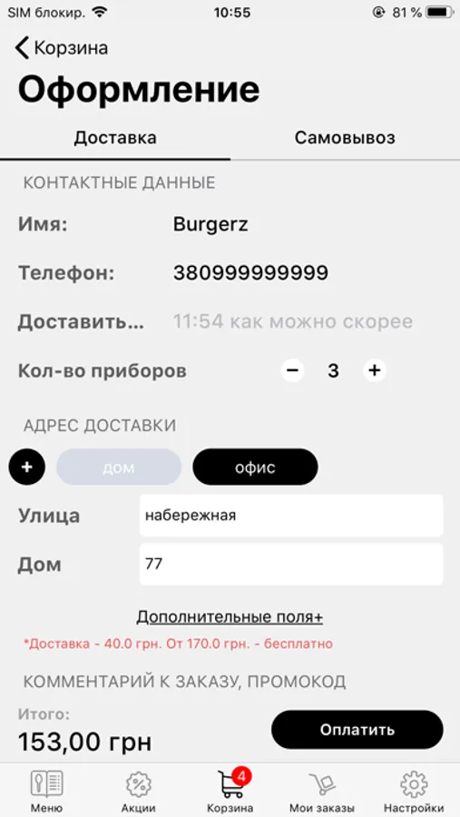 • додати та зберегти адреси для доставки;