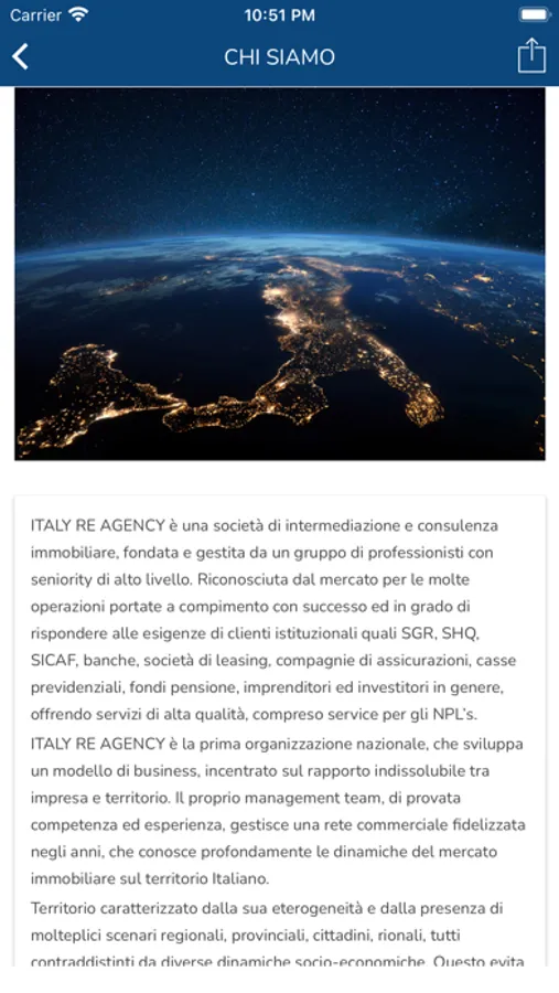 ITALY RE AGENCY è una società di intermediazione e consulenza immobiliare, fondata e gestita da un gruppo di professionisti con seniority di alto livello. Riconosciuta dal mercato per le molte operazioni portate a compimento con successo ed in grado di rispondere alle esigenze di clienti istituzionali quali SGR, SHQ, SICAF, banche, società di leasing, compagnie di assicurazioni, casse previdenziali, fondi pensione, imprenditori ed investitori in genere, offrendo servizi di alta qualità, compreso service per gli NPL’s. ITALY RE AGENCY è la prima organizzazione nazionale, che sviluppa un modello di business, incentrato sul rapporto indissolubile tra impresa e territorio. Il proprio management team, di provata competenza ed esperienza, gestisce una rete commerciale fidelizzata negli anni, che conosce profondamente le dinamiche del mercato immobiliare sul territorio Italiano. Territorio caratterizzato dalla sua eterogeneità e dalla presenza di molteplici scenari regionali, provinciali, cittadini, rionali, tutti contraddistinti da diverse dinamiche socio-economiche. Questo evita il rischio di incorrere in pericolosi errori di scarsa valorizzazione degli assets o di sovrastima del loro valore reale.