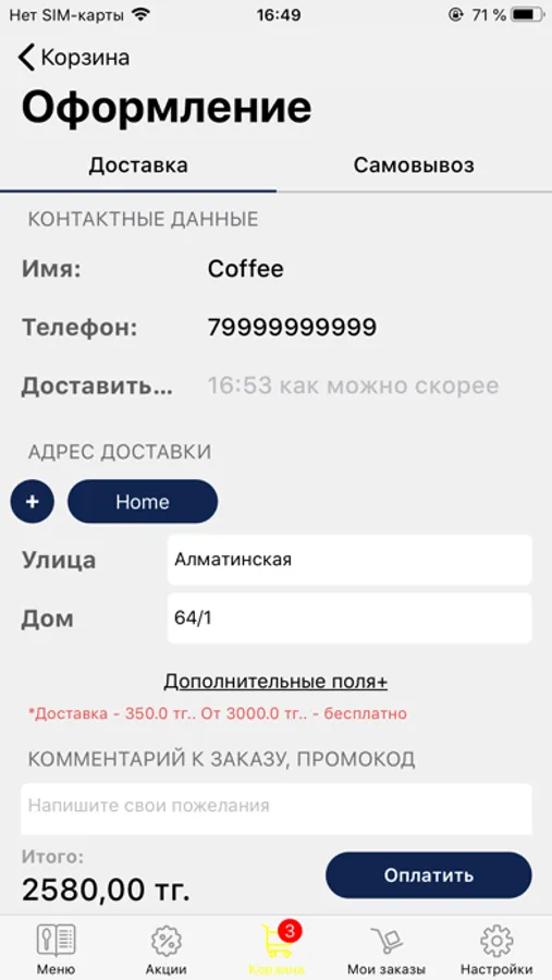 • установить время, в которое вы бы хотели забрать заказ с нашего заведения;