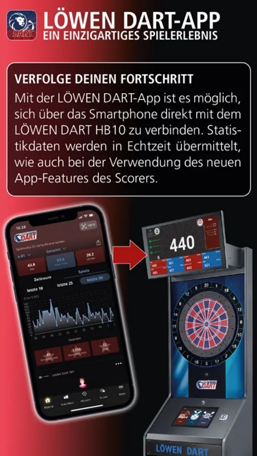 Eine Innovation im Dart stellt die App in Verbindung mit dem neuen LÖWEN DART HB10 dar.
