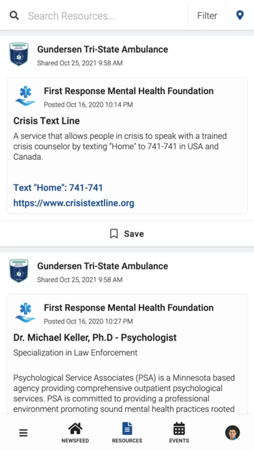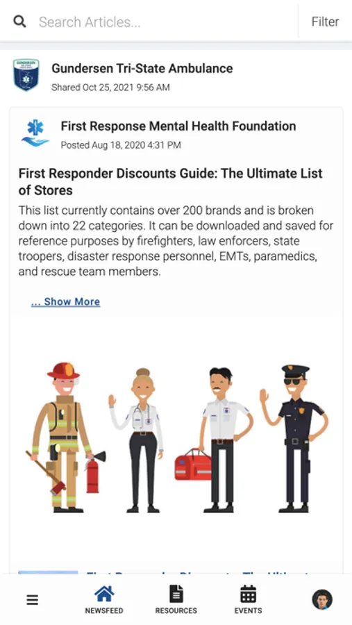GHS Ambulance PeerConnect connects the public to information about Gundersen Tri-State Ambulance programming and services. Users have access to newsfeed articles, resources, and events related to mental health, wellness, culture, and belonging.