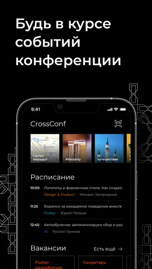 Заходите в приложение конференции CrossConf, чтобы увидеть все темы докладов, имена спикеров и составить ваш индивидуальный план посещения.