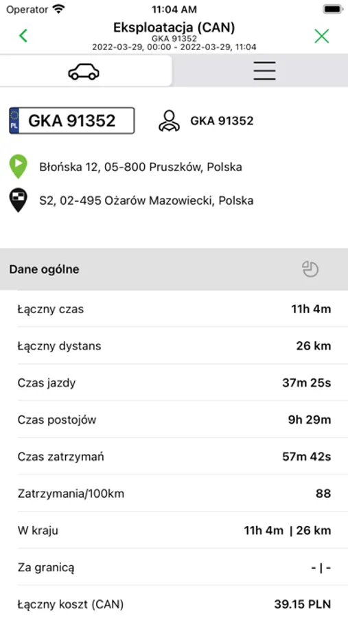 - szczegółowej analizy przebytych tras pojazdów i urządzeń mobilnych w formie animacji na mapie w raporcie „Animacja Trasy".