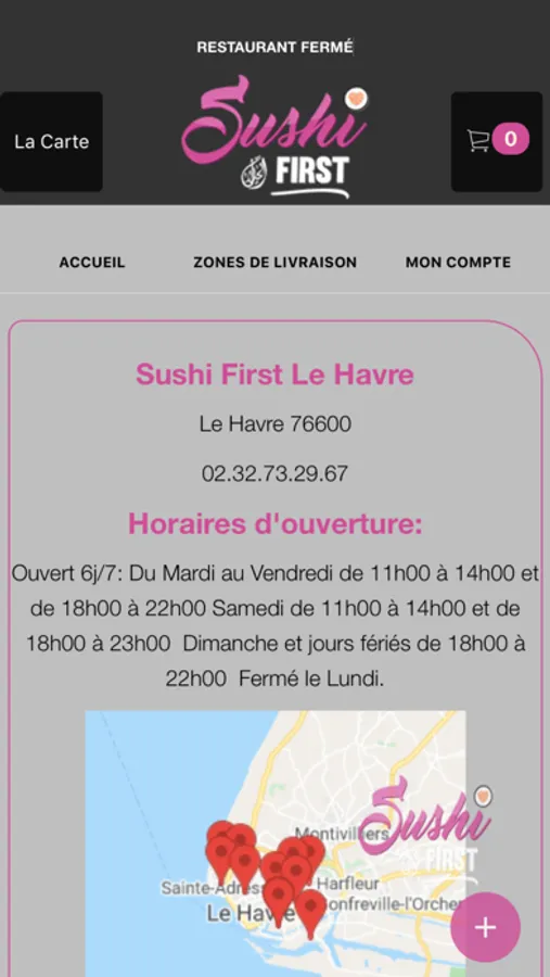 L'application Sushi First Le Havre vous permet de commander en ligne ou par téléphone via votre application. Vous pouvez consulter notre carte et choisir vos produits.