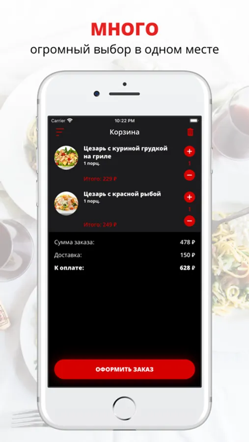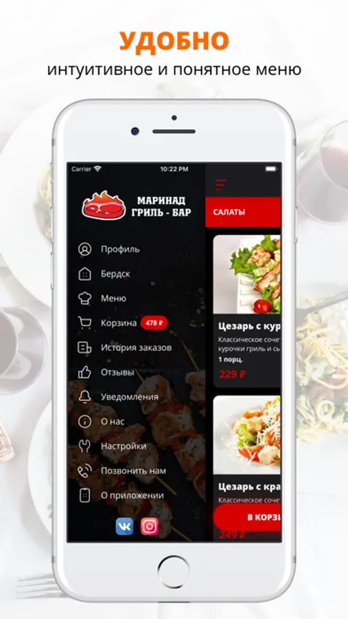 Скачивайте наше приложение, оформляйте заказ и наслаждайтесь любимой едой, где бы Вы ни были! Приятного аппетита!
