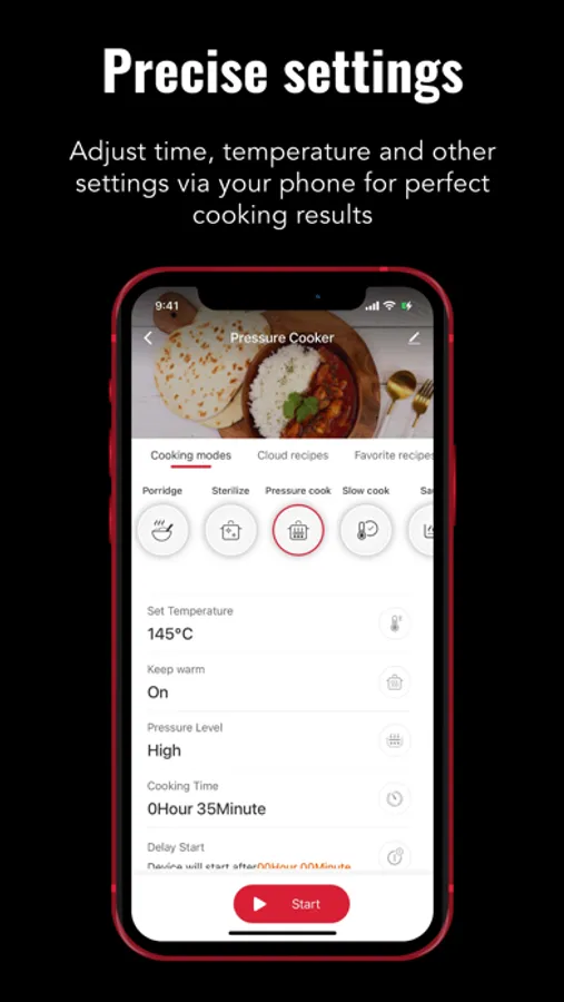 Set and monitor the cooking time and status of your food anytime and anywhere via your smartphone.