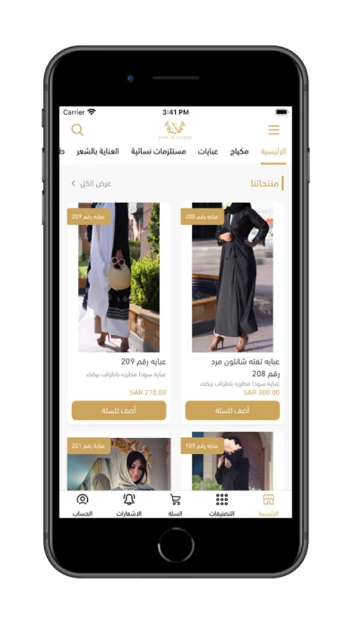 Dar Nijood application allows you to pay using various payment methods, get exclusive offers, track orders, edit your profile and add items to your wish list and save them for later.