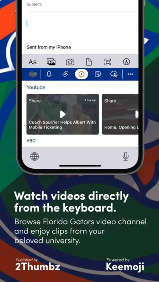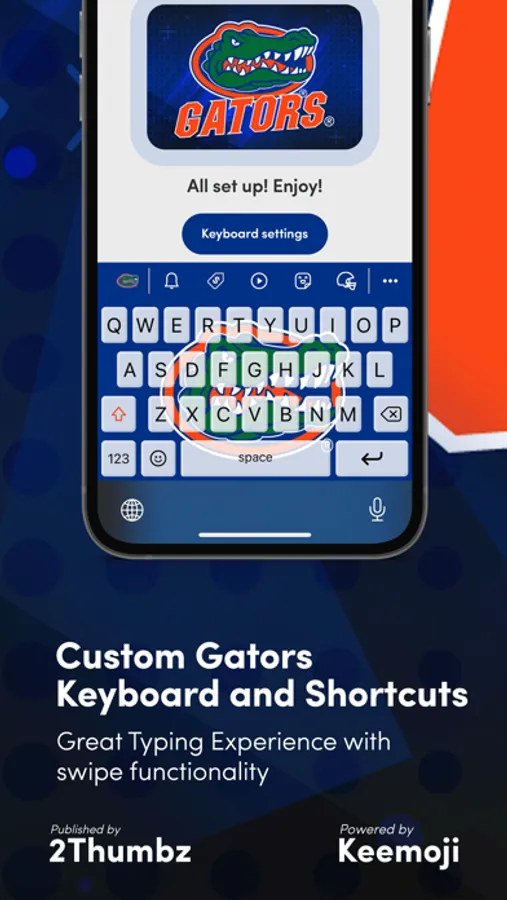 Florida Gators Keyboard is an officially licensed app for enjoying the full Gator Nation experience. This app is owned and published by 2Thumbz, a leading mobile app development company and a trusted collegiate publisher since 2003.