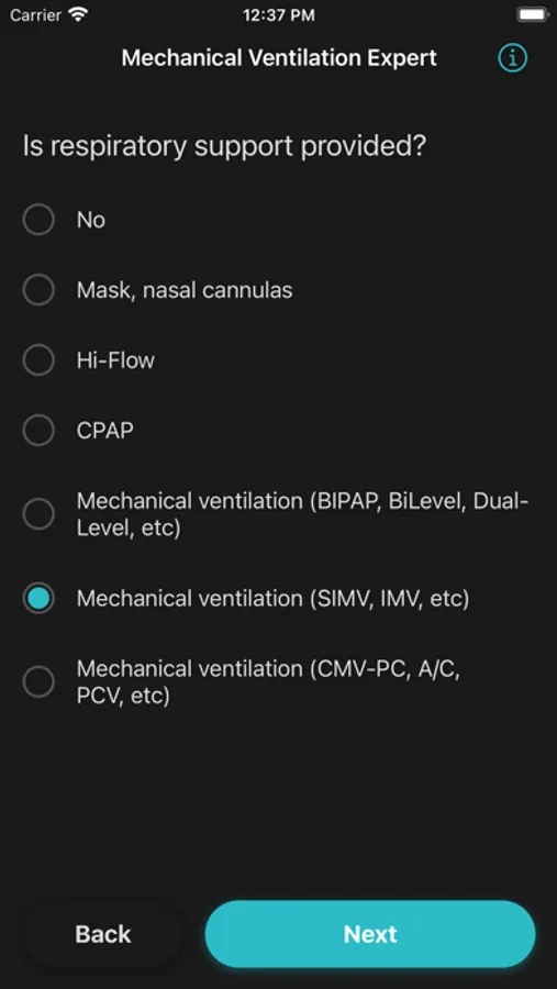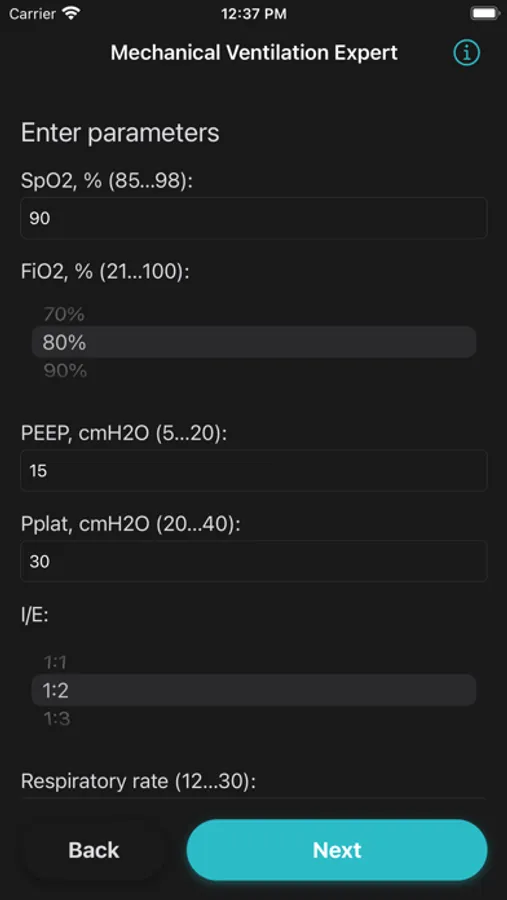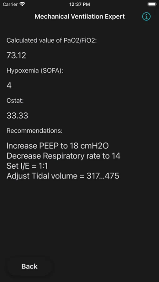 This application is based on the results of the research. The relationship between SpO2 and PaO2 index values was determined for various FiO2 and types of respiratory support. The app also implements the general principle of oxygen therapy - from less to more invasive. The app allows the user not only to choose the most effective method of respiratory support, but also timely learn about the need for its correction.
