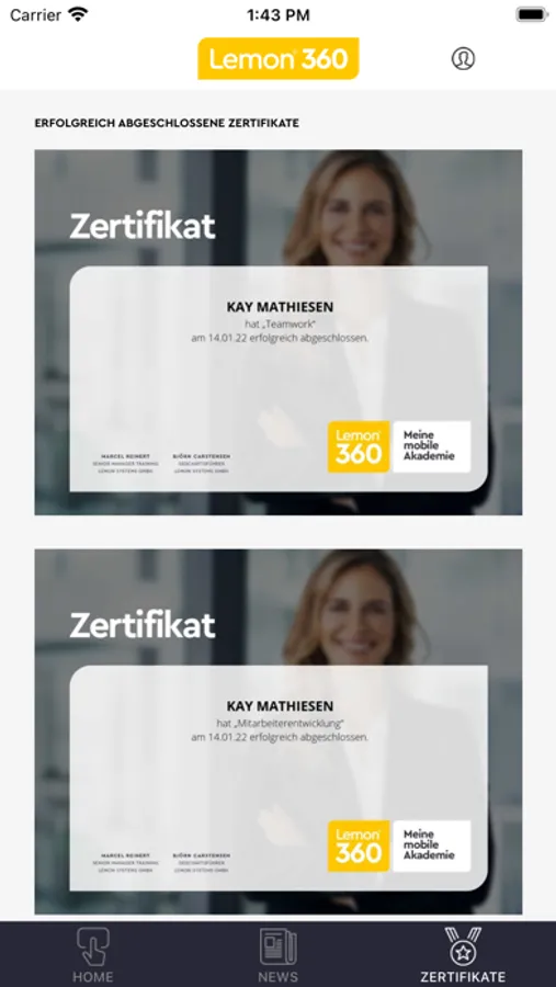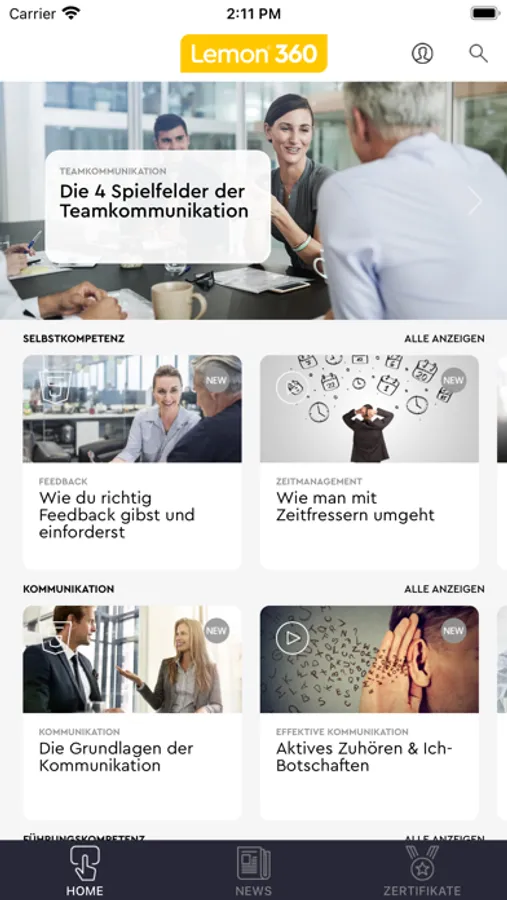 Steigern Sie Ihr Wissen, bewerten und kommentieren Sie Inhalte, beantworten Sie Trainingsfragen, sammeln Sie Punkte und Zertifikate, durchstöbern Sie interessante News. Durch die moderne und intuitive Benutzeroberfläche ist Lemon360 absolut einfach im Handling. So macht Lernen Spaß und persönliche Weiterentwicklung gelingt spielerisch on the go. Lemon360 bietet Ihnen alles, was Sie für den unkomplizierten Einstieg in den Knowhow-Transfer mit mobilen Endgeräten brauchen.