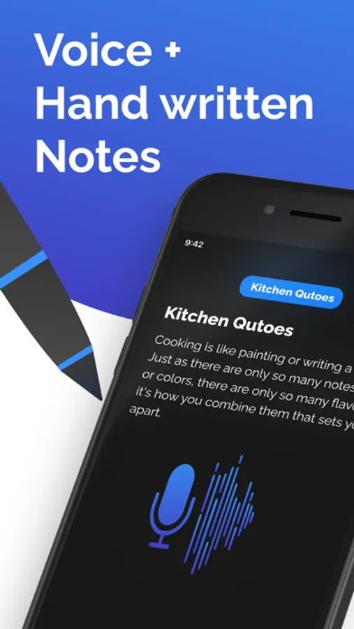 Good Voice Notes brings ease to your life by helping you note down anything instantly. Whether you are in a meeting, classroom, or in a park, Notes++ gives you the confidence to note down any thought instantly so that you never forget it again. THE BEST THING ABOUT THIS APP IS THAT YOU DON'T EVEN NEED TO USE YOUR HANDS TO TAKE NOTES. JUST TAP THE "MIC" AND THE APP WILL START TAKING NOTES FOR YOU.