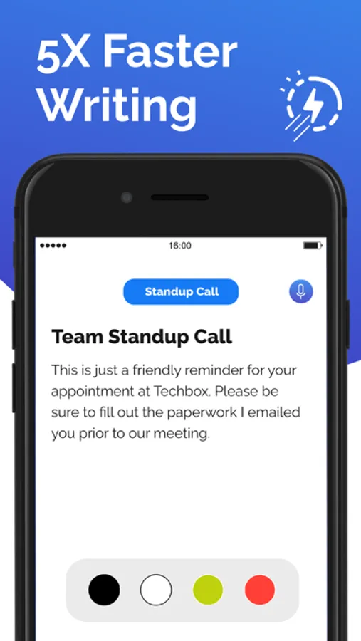 Voice Notes comes in 5 exclusive colours. Choose your favourite colour to accent your writing mood. Feeling the mood to write long passages? Choose “red” as it motivates you. Or if you are trying to write down a note in peace, choose “blue” as it is the colour of peace.