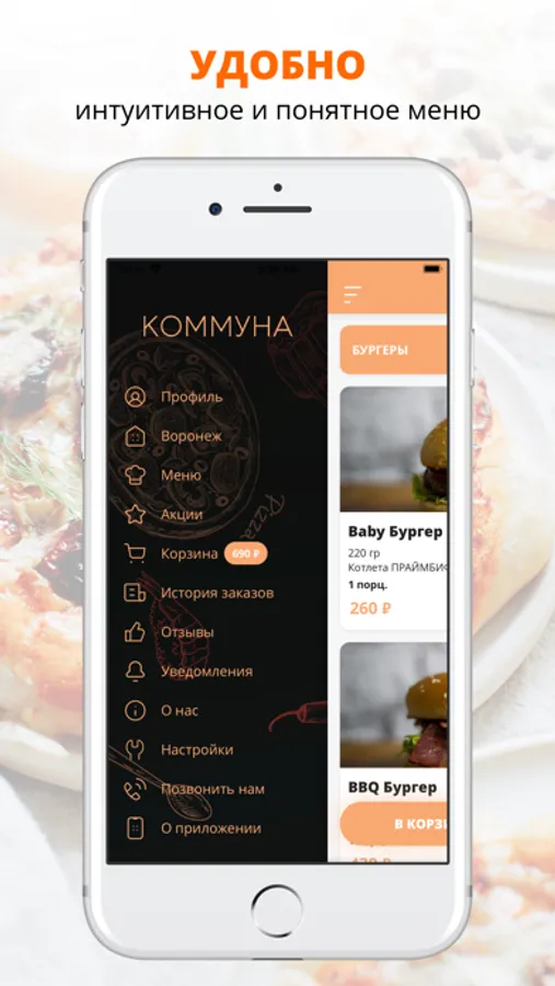 Теперь с помощью мобильного приложения Вы сможете получать и копить бонусы, отслеживать статус заказа, выбрать удобный способ оплаты и быть в курсе всех акций и новостей! Выбирайте и заказывайте вкусную еду с доставкой всего в несколько кликов!