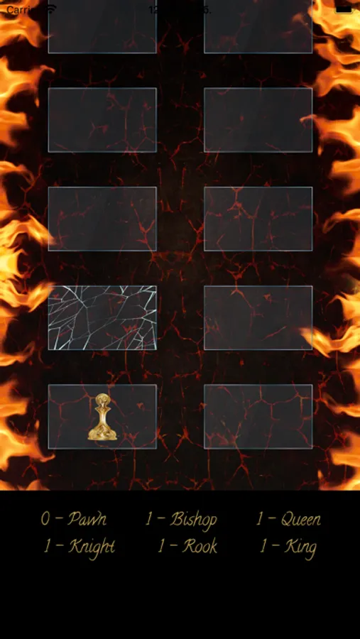 The game consists of 24 levels. In each level there will be a path of glass panels pairs (left and right). If you know how to play chess, you already know that there are six different types of pieces: king, rook, bishop, queen, knight, and pawn. Depending on the level, one or more figures will be hidden below the panels. The goal of the game is to reveal all of the hidden pieces by using their moves. Every piece move starts right after the previous. The catch is that you don't know which is the next piece that you need to reveal. While trying to guess and reveal the path, if you tap on a wrong glass panel (wrong piece move) it will break, the game will end and you will need to start from the beginning. At the start of each level, the only thing that you will know will be what are the hidden pieces types and how many times each piece is hidden (there could be a figure/s which are hidden more than one time in the game's upper levels). The level will be completed if you reveal all of the hidden pieces.