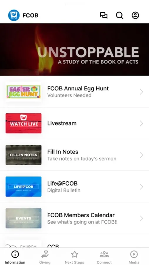 This app will help you stay connected with the day-to-day life of fcob. With this app you can: watch or listen to past messages; stay up to date with push notifications; share your favorite messages via Twitter, Facebook, or email; and download messages for offline listening. Enjoy as we LOVE, PROCLAIM & REACH!!