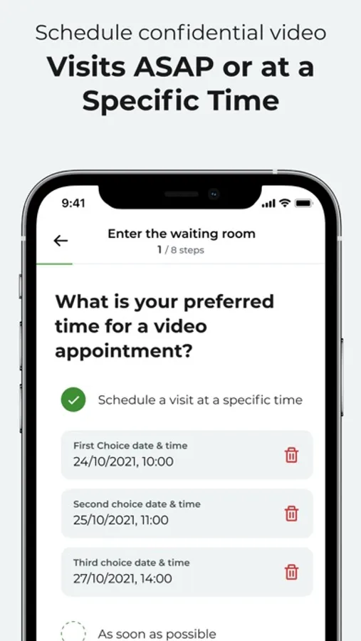 Our app makes it easy to book virtual appointments with doctors and specialists. Schedule appointments on your schedule - and receive care from the comfort of your own home.