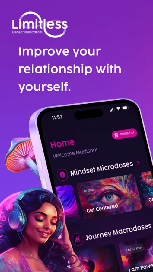 The Limitless app offers two types of guided visualizations: Mindset Microdoses and Journey Macrodoses. Mindset Microdoses are short visualization techniques that you can use anytime, anywhere, to navigate daily life with ease. Journey Macrodoses are longer, more powerful visualization experiences that can help you tap into your innate healing power and reset automatic stress responses.