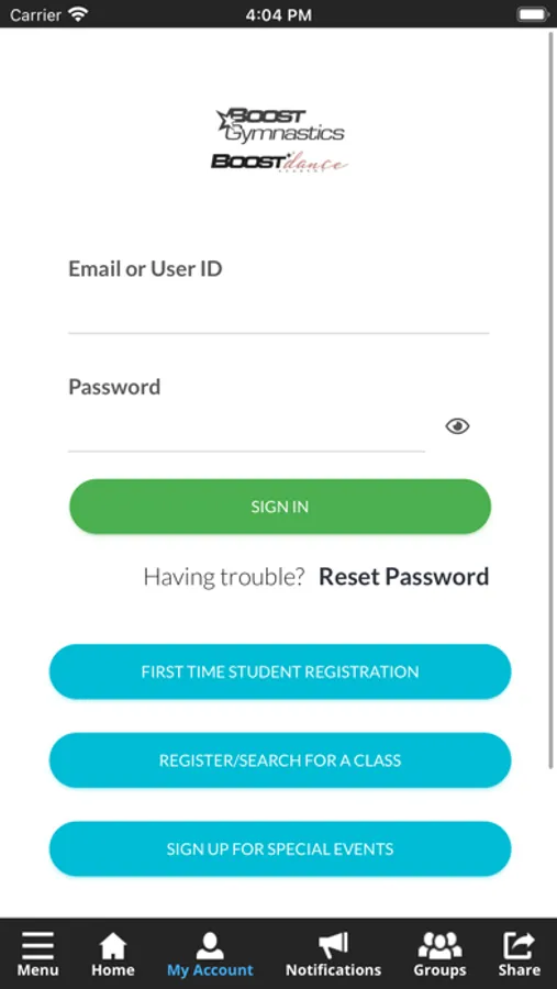 The BOOST Gymnastics & Dance app allows you to manage your account with ease, register for classes, parties, and special events. You'll also receive important notifications about class changes, closings, registration openings, special announcements, and upcoming events.