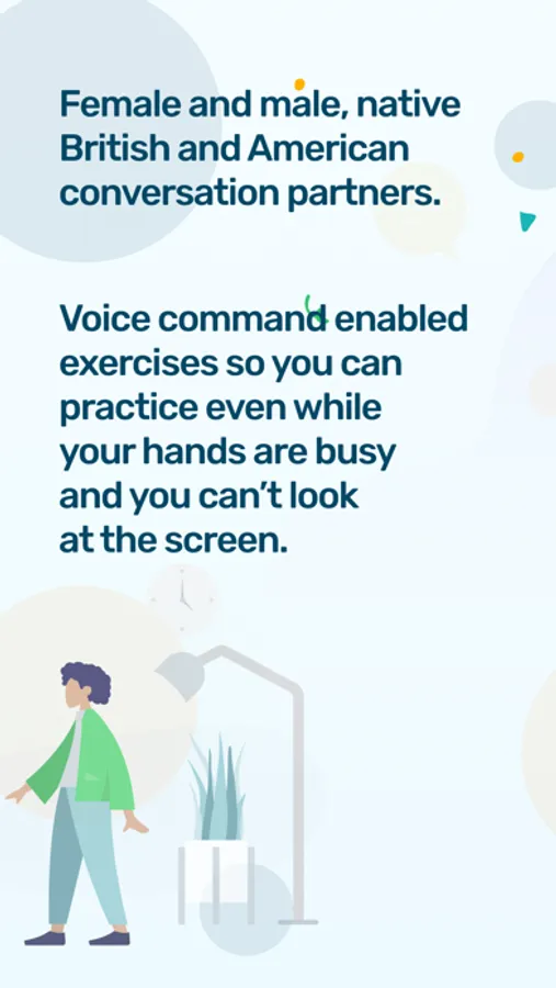 Our voice command enabled exercises help you practice even while your hands are busy and you can’t look at the screen. This means you can use Talk @ Ease while sitting in a traffic jam, ironing, or making sandwiches at home. With the help of voice commands like “Slower please,” “Speak up,” “Stop,” or “Please repeat,” you can chat with your conversation pal without touching or even looking at your phone.