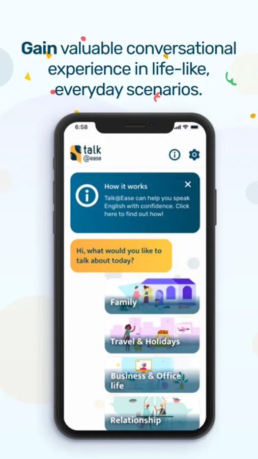 Hi! Hello! Hallow? Have you been studying English for a while but are still struggling when speaking English aloud? We hear you loud and clear! Talk @ Ease is an English learning app that actually listens to you using AI-powered speech recognition technology to help you master English pronunciation and gain valuable conversational experience. Talk to our chatbot in a variety of everyday situations so that you can quickly improve your language skills, allowing you to speak English more confidently, clearly, and correctly.
