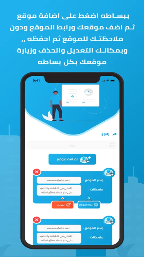 * اضافة مواقعك المفضلة معا اضافة ملاحظات عليها وامكانية زيارة الموقع او التعديل عليه او الحذف
