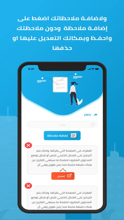 * اضافة ملاحظاتك المفضلة وامكانية التعديل عليها او الحذف