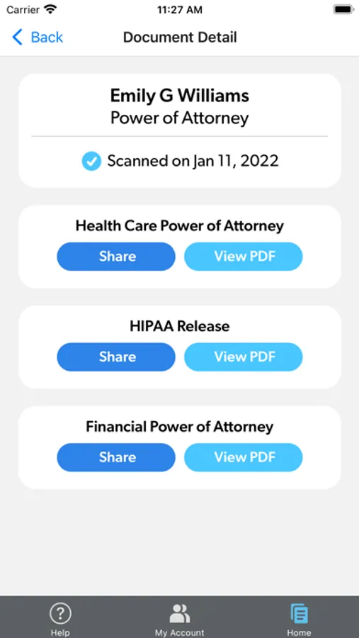 3. Share documents by email or text, with health care providers & financial institutions in an emergency.
