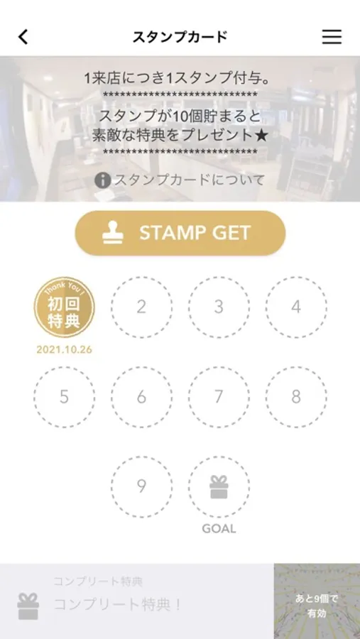 アプリ内にスタンプが貯められます。