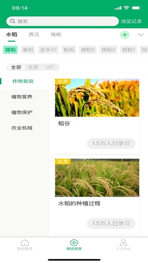 有视频、课件、资讯、作物价格查看和培训等内容,视频里包括湖南种植的主要行业,包括柑橘、辣椒、葡萄、水稻、晚稻等;包括农业种植的环节生命周期,包括栽培、作物营养、质保、存储、收割等。极大的满足了农业基地的业务需求。