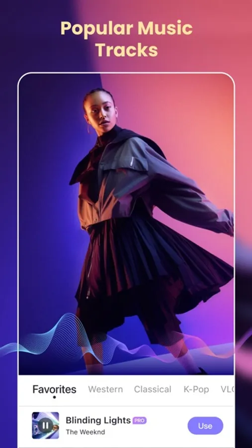 Add Stickers & Music: choose dynamic stickers, fonts and hot music tracks from our library.