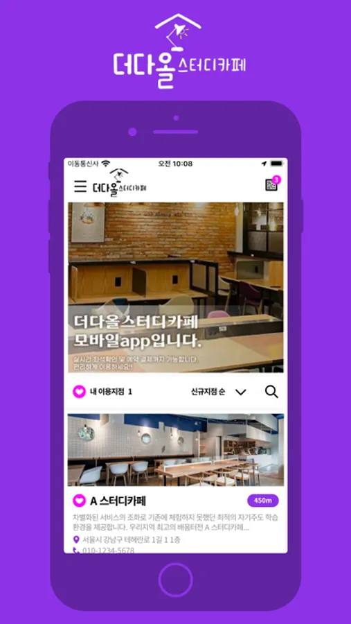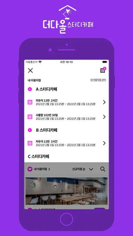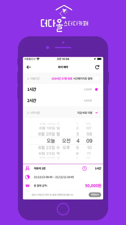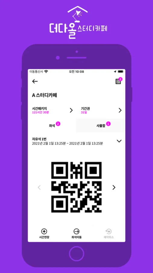 더다올스터디카페 어플리케이션을 통해 서비스 이용 및