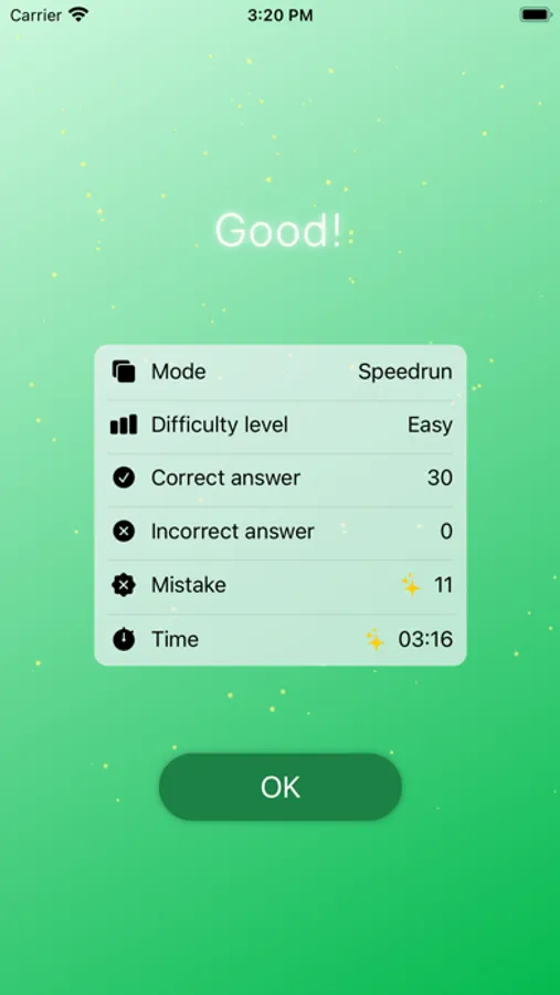 - 2 modes, "Normal" to challenge up to 100 questions and "Speedrun" to challenge the speed of answering 30 questions