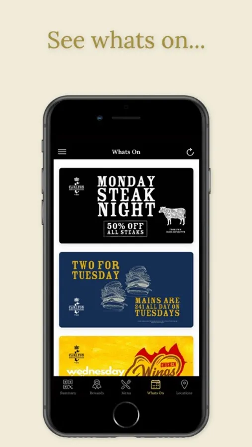 The Carlton Bar & Steakhouse loyalty app enables you to earn and spend membership