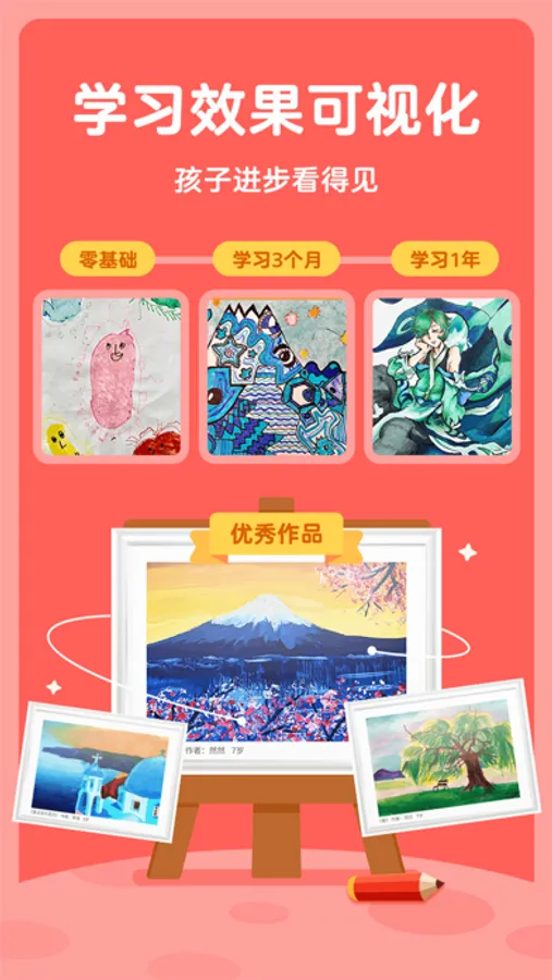 家长可从画啦啦提供的课程卡片看到教学信息和授课老师,随时随地掌握上课情况。课后时间,通过课堂录像回放、作品专属点评与个人学习报告,家长可以更深入、更全面地了解小朋友的学习情况。