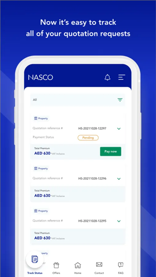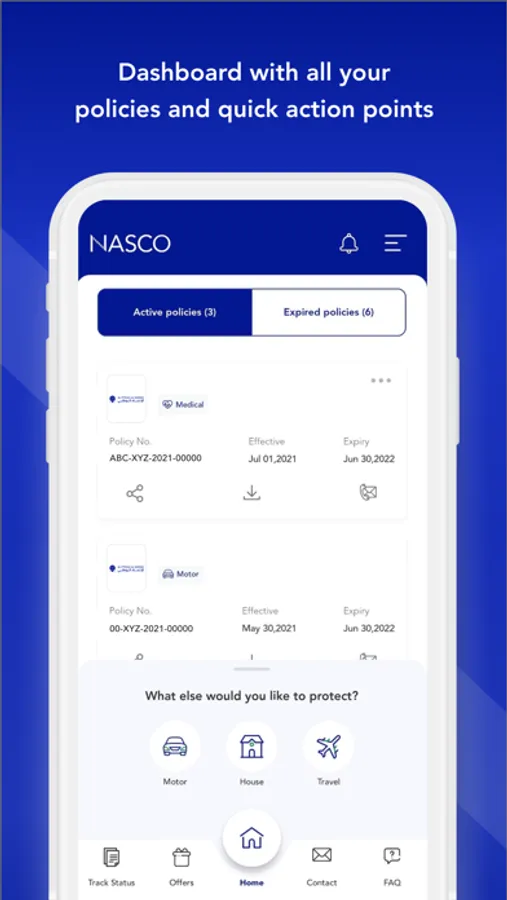 Nasco Connect provides you with the details of your medical, motor, travel and home insurance policies. You can also request quotation and purchase new policies in seconds.