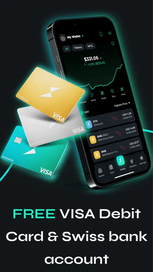 Non-custodial wallet, free VISA card, and complementary Swiss bank account for secure crypto management and cross-chain transactions.