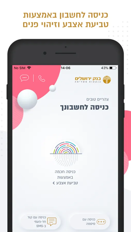 אפליקציית בנק ירושלים מאפשרת לך לצפות במידע על חשבונך ולבצע פעולות בדרך פשוטה, בטוחה ומהירה, בכל זמן ומכל מקום.