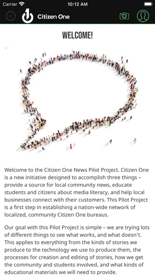 Our app will ask you for access to your camera and microphone. This is so that you can use the app to gather photos and videos and submit them to Citizen One for publishing . It will also ask you for permission to use your location. This is so we can send you messages based on where you are in the community. This could be anything from interesting content about where you are, special offers from partners and businesses you're nearby, or other useful information based on your location. Apple wants you to know that continued use of GPS running in the background can dramatically decrease battery life. The app will still work without access to your location, but you may miss out on a lot of really cool, helpful, and valuable information.