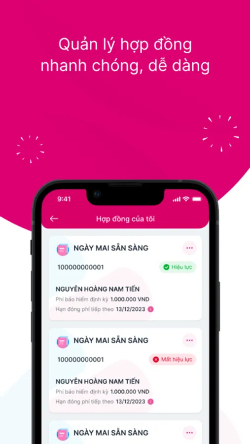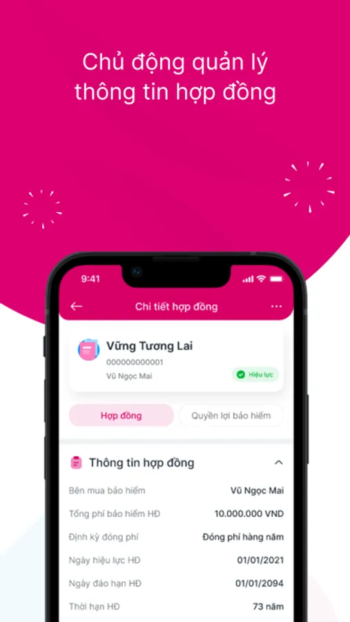1. Chủ động quản lý thông tin hợp đồng: quyền lợi bảo hiểm, lịch sử hợp đồng, lịch sử đóng phí và các tài liệu liên quan đến hợp đồng của bạn